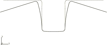 Settings in the import analysis determine the reference configuration. When you choose to update the reference configuration in an import analysis, the deformed sheet with its material state at the end of the Abaqus/Explicit analysis is imported into Abaqus/Standard and the deformed configuration becomes the reference configuration. This procedure is most convenient if, during postprocessing, the displacements due to springback need to be displayed. When you do not update the reference configuration, the material state, displacements, and strains of the deformed sheet at the end of the Abaqus/Explicit analysis are imported into Abaqus/Standard, and the original configuration remains as the reference configuration. This procedure should be used if it is desirable to obtain a continuous displacement solution.