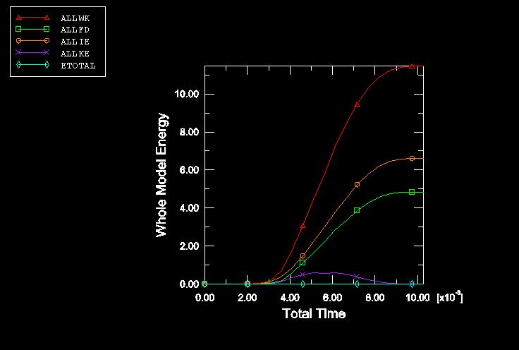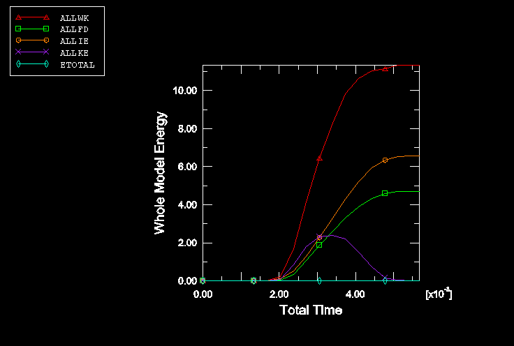 Figure 2. Energy history for forming analysis: 30 m/s peak velocity of punch.
