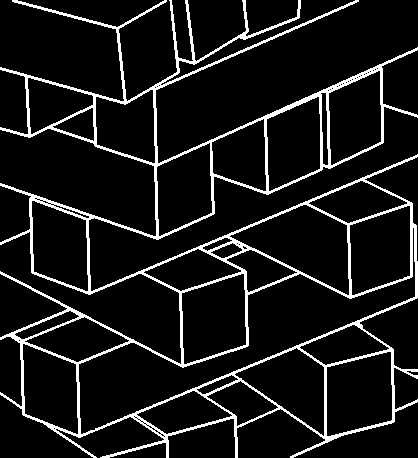 Each block is modeled with a single C3D8R element. The use of a coarse mesh highlights the edge-to-edge contact capability of the general contact algorithm, because the majority of the block-to-block interactions do not result in penetrations of nodes into faces.