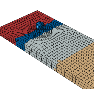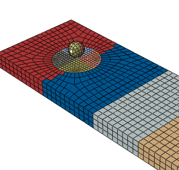 refined adding to the computational cost). The example below (Figure 1) shows a spherical projectile impacting a flat plate with a failure model, thus