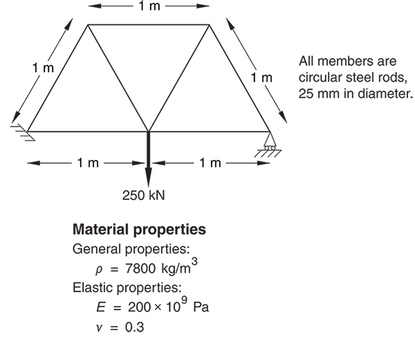 joints. The frame is prevented from moving out of plane. A simulation is first performed in Abaqus/Standard to determine the structure's static deflection and the peak stress in its members when a 250