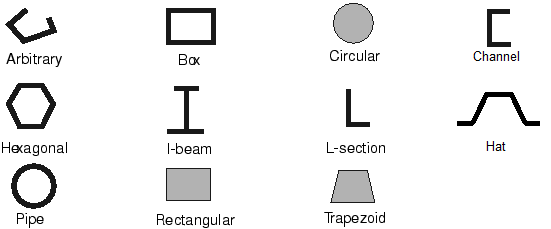 Abaqus offers a variety of common cross-section shapes, as shown in Figure 1, should you decide to define the beam profile geometrically. You can also define almost any thin-walled cross-section using the arbitrary cross-section definition. For a detailed discussion of the beam cross-sections available in Abaqus, see Beam Cross-Section Library. ![]() If you define a beam profile using one of the built-in cross-sections in the Abaqus library, Abaqus/CAE prompts you for the required cross-section dimensions, which are different for each type of cross-section. When the beam profile is associated with a beam section property, you can specify whether to have the section engineering properties calculated during the analysis or to have Abaqus precompute them (at the beginning of the analysis). The former option can be used when the material behavior is either linear or nonlinear (for example, if the section stiffness changes due to inelastic yielding); the latter option is more efficient, however, for linear elastic material behavior. Alternatively, you can provide the section engineering properties (area, moments of inertia, and torsional constants) instead of the cross-section dimensions. The material behavior may be either linear or nonlinear. Thus, you can combine the beam's geometry and material behavior to define its response to loads, which may be linear or nonlinear. See Using a General Beam Section to Define the Section Behavior for further details. In Abaqus/Standard you can also define beams with linearly tapered cross-sections. General beam sections with linear response and standard library sections are supported. Meshed beam cross-sections allow a description of the beam cross-section that includes multiple materials and complex geometry. This type of beam profile is discussed further in Meshed Beam Cross-Sections. |