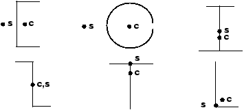 Figure 3. Approximate locations of shear centers, s, and centroids, c, for a number of beam cross-sections.