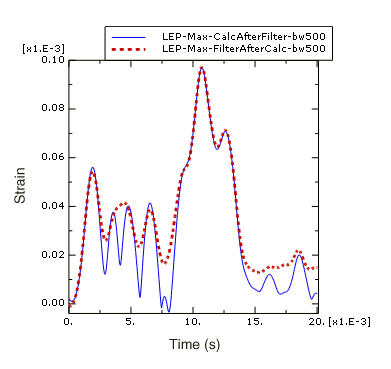 Figure 6. Principal logarithmic strain calculated before and after filtering