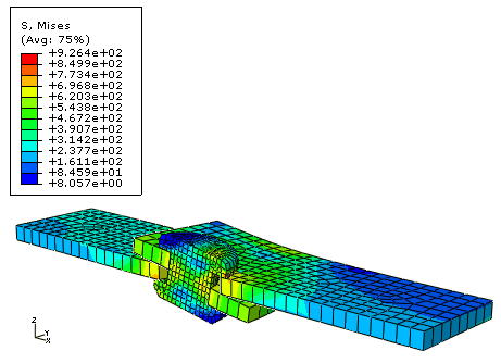 Figure 1. Deformed model shape. Figure 2. Mises stress.