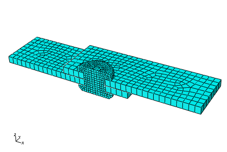 Similarly, mesh the rivet with C3D8R elements using a global seed size of