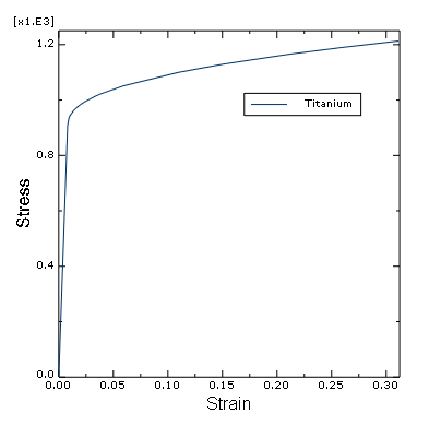 The stress-strain data for the aluminum and titanium materials are provided