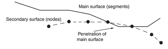 ![]() Due to the strict main-secondary formulation, you must be careful to select the secondary and main surfaces correctly in order to achieve the best possible contact simulation. Some simple rules to follow are: