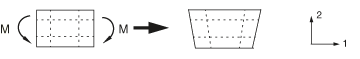 The linear elements CPS4 and C3D8 underpredict the deflection so badly that the results are unusable. The results are least accurate with coarse meshes, but even a fine mesh (8 × 24) still predicts a tip displacement that is only 56% of the theoretical value. Notice that for the linear, fully integrated elements it makes no difference how many elements there are through the thickness of the beam. The underprediction of tip deflection is caused by shear locking, which is a problem with all fully integrated, first-order, solid elements. As we have seen, shear locking causes the elements to be too stiff in bending. It is explained as follows. Consider a small piece of material in a structure subject to pure bending. The material will distort as shown in Figure 3. ![]() Lines initially parallel to the horizontal axis take on constant curvature, and lines through the thickness remain straight. The angle between the horizontal and vertical lines remains at 90°. The edges of a linear element are unable to curve; therefore, if the small piece of material is modeled using a single element, its deformed shape is like that shown in Figure 4. ![]() For visualization, dotted lines that pass through the integration points are plotted. It is apparent that the upper line has increased in length, indicating that the direct stress in the 1-direction, , is tensile. Similarly, the length of the lower dotted line has decreased, indicating that is compressive. The length of the vertical dotted lines has not changed (assuming that displacements are small); therefore, at all integration points is zero. All this is consistent with the expected state of stress of a small piece of material subjected to pure bending. However, at each integration point the angle between the vertical and horizontal lines, which was initially 90°, has changed. This indicates that the shear stress, , at these points is nonzero. This is incorrect: the shear stress in a piece of material under pure bending is zero. This spurious shear stress arises because the edges of the element are unable to curve. Its presence means that strain energy is creating shearing deformation rather than the intended bending deformation, so the overall deflections are less: the element is too stiff. Shear locking only affects the performance of fully integrated, linear elements subjected to bending loads. These elements function perfectly well under direct or shear loads. Shear locking is not a problem for quadratic elements since their edges are able to curve (see Figure 5). The predicted tip displacements for the quadratic elements shown in Table 1 are close to the theoretical value. However, quadratic elements will also exhibit some locking if they are distorted or if the bending stress has a gradient, both of which can occur in practical problems. ![]() Fully integrated, linear elements should be used only when you are fairly certain that the loads will produce minimal bending in your model. Use a different element type if you have doubts about the type of deformation the loading will create. Fully integrated, quadratic elements can also lock under complex states of stress; thus, you should check the results carefully if they are used exclusively in your model. However, they are very useful for modeling areas where there are local stress concentrations. Volumetric locking is another form of overconstraint that occurs in fully integrated elements when the material behavior is (almost) incompressible. It causes overly stiff behavior for deformations that should cause no volume changes. It is discussed further in Materials. |