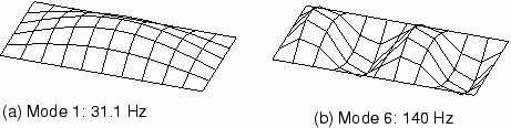 Consider, for example, the plate shown in Figure 1. The mesh of first-order shell elements is adequate for a static analysis of the plate under a uniform load and is also suitable for the prediction of the first mode shape. However, the mesh is clearly too coarse to be able to model the sixth mode accurately. ![]() Figure 2 shows the same plate modeled with a refined mesh of first-order elements. The displaced shape for the sixth mode now looks much better, and the frequency predicted for this mode is more accurate. If the dynamic loading on the plate is such that there is significant excitation of this mode, the refined mesh must be used; the results from the coarse mesh will not be accurate. ![]() |