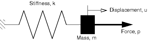 ![]() The internal force in the spring is given by so that its dynamic equation of motion is This mass-spring system has a natural frequency (in radians/time) given by If the mass is moved and then released, it will oscillate at this frequency. If the force is applied at this frequency, the amplitude of the displacement will increase dramatically—a phenomenon known as resonance. Real structures have a large number of natural frequencies. It is important to design structures in such a way that the frequencies at which they may be loaded are not close to the natural frequencies. The natural frequencies can be determined by considering the dynamic response of the unloaded structure ( in the dynamic equilibrium equation). The equation of motion is then For an undamped system , so Solutions to this equation have the form Substituting this into the equation of motion yields the eigenvalue problem where . This system has n eigenvalues, where n is the number of degrees of freedom in the finite element model. Let be the jth eigenvalue. Its square root, , is the natural frequency of the jth mode of the structure, and is the corresponding jth eigenvector. The eigenvector is also known as the mode shape because it is the deformed shape of the structure as it vibrates in the jth mode. The frequency extraction procedure in Abaqus/Standard is used to determine the modes and frequencies of the structure. This procedure is easy to use in that you need only specify the number of modes required or the maximum frequency of interest. |