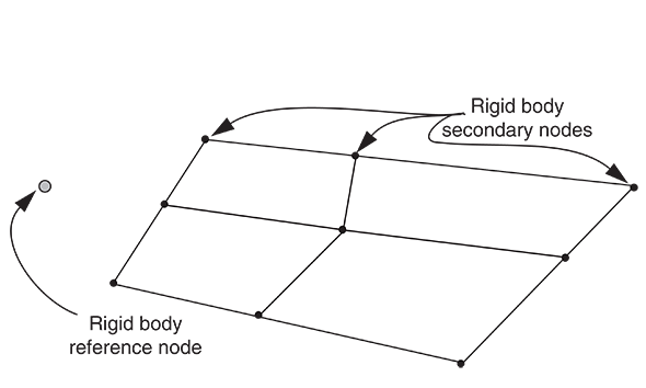Figure 1 shows a rigid body. The shape of the rigid body is defined either as an analytical surface obtained by revolving or extruding a two-dimensional geometric profile or as a discrete rigid body obtained by meshing the body with nodes and elements. The shape of the rigid body does not change during a simulation but can undergo large rigid body motions. The mass and inertia of a discrete rigid body can be calculated based on the contributions from its elements, or they can be assigned directly. ![]() The motion of a rigid body can be prescribed by applying boundary conditions at the rigid body reference node. Loads on a rigid body are generated from concentrated loads applied to nodes and distributed loads applied to elements that are part of the rigid body or from loads applied to the rigid body reference node. Rigid bodies interact with the rest of the model through nodal connections to deformable elements and through contact with deformable elements. The use of rigid bodies is illustrated in Contact. It may be useful to make parts of a model rigid for verification purposes. For example, in complex models elements far away from the particular region of interest could be included as part of a rigid body, resulting in faster run times at the model development stage. When you are satisfied with the model, you can remove the rigid body definitions and incorporate an accurate deformable finite element representation throughout. The principal advantage to representing portions of a model with rigid bodies rather than deformable finite elements is computational efficiency. Element-level calculations are not performed for elements that are part of a rigid body. Although some computational effort is required to update the motion of the nodes of the rigid body and to assemble concentrated and distributed loads, the motion of the rigid body is determined completely by a maximum of six degrees of freedom at the rigid body reference node. In Abaqus/Explicit rigid bodies are particularly effective for modeling relatively stiff parts of a structure for which tracking stress waves and distributions is not important. Element stable time increment estimates in the stiff region can result in a very small global time increment. Since rigid bodies and elements that are part of a rigid body do not affect the global time increment, using a rigid body instead of a deformable finite element representation in a stiff region can result in a much larger global time increment, without significantly affecting the overall accuracy of the solution. Rigid bodies defined with analytical rigid surfaces in Abaqus are slightly cheaper in terms of computational cost than discrete rigid bodies and may yield smoother results. In Abaqus/Explicit, for example, contact with analytical rigid surfaces tends to be less noisy than contact with discrete rigid bodies because analytical rigid surfaces can be smooth, whereas discrete rigid bodies are inherently faceted. However, the shapes that can be defined with analytical rigid surfaces are limited. |