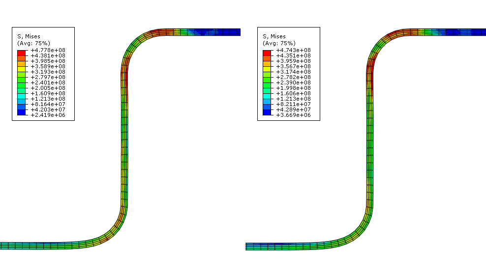 shows a comparison of the Mises stress in the blank obtained with