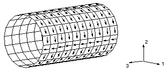 ![]() The default set of local material directions can sometimes cause problems; a case in point is the cylinder shown in Figure 2. ![]() For most of the elements in the figure the local 1-direction is circumferential. However, there is a line of elements that are normal to the global 1-axis. For these elements the local 1-direction is the projection of the global 3-axis onto the shell, making the local 1-direction axial instead of circumferential. A contour plot of the direct stress in the local 1-direction, , looks very strange, since for most elements is the circumferential stress, whereas for some elements it is the axial stress. In such cases it is necessary to define more appropriate local directions for the model, as discussed in the next section. |