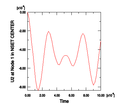 Plot the deformed shape of the model. For large-displacement analyses (the