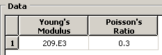 Type a value of 209.E3 MPa for Young's modulus and a value of 0.3 for Poisson's ratio in the respective fields, as shown in Figure 2. Use Tab to move between cells.