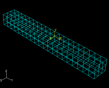 Basic meshing is a two-stage operation: first you seed the edges of the part instance, and then you mesh the part instance. You select the number of seeds based on the desired element size or on the number of elements that you want along an edge, and Abaqus/CAE places the nodes of the mesh at the seeds whenever possible. For the cantilever beam tutorial the default seeding will generate a mesh with square hexahedral elements.