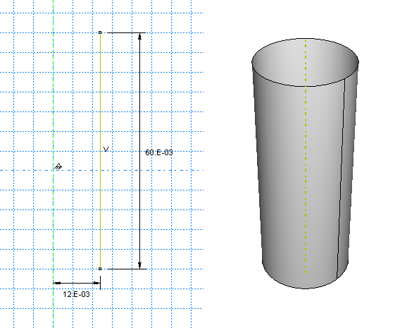 . Sketch a vertical line to the right of the axis. - Dimension the horizontal distance from the line to the axis, and change the distance to