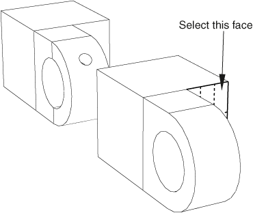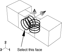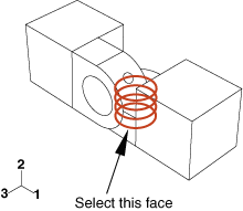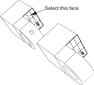 From the movable part instance, select the face of the solid hinge piece shown in Figure 1.