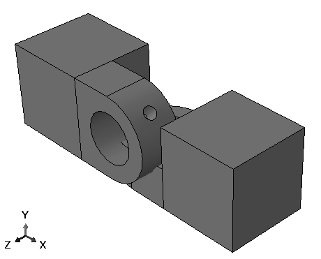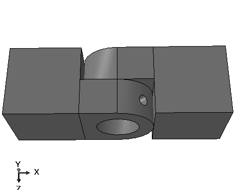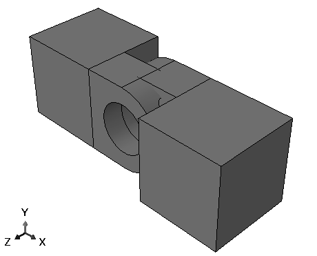 Abaqus/CAE rotates the solid hinge piece so that the two selected faces are parallel to each other and 0.04 meters apart, as shown in Figure 3.