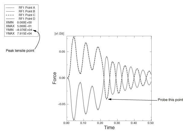 From the list of available history output, select the four curves