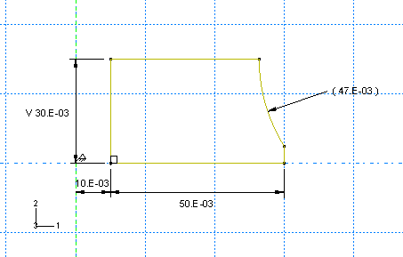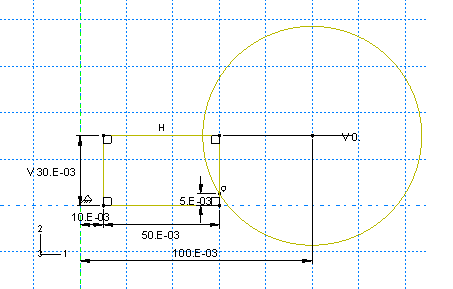 Sketch a circle using the Create Circle: Center and Perimeter tool . Select any point to the right of the rectangle as the center, and snap the perimeter point to any point along the right edge of the rectangle. Dimension the circle as follows: