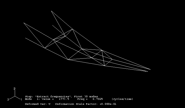 Abaqus/CAE displays the deformed model shape associated with the first vibration mode, as shown in Figure 1.