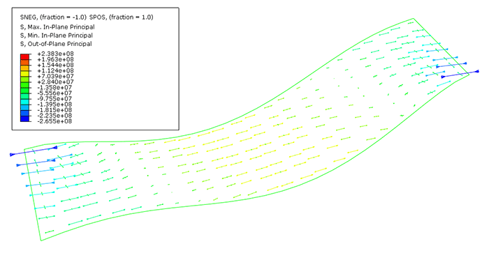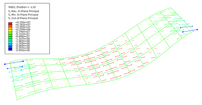 Figure 3. Symbol plot of principal stresses on the top and bottom surfaces