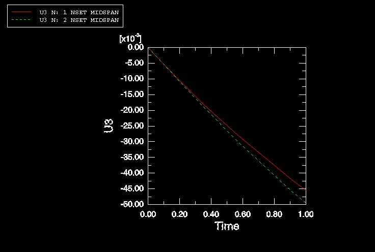 You saved the displacements of the midspan nodes (node set