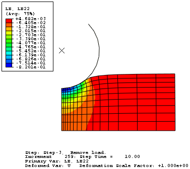 Figure 1. Contour plot of the model after the last increment of the third step.