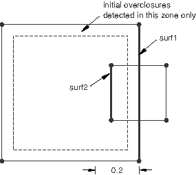 search zone tolerances, as discussed in Contact Initialization Search Criteria. Mesh distortion can occur if large strain-free adjustments occur to