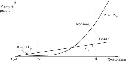 pressure-overclosure relationship is linear. With the nonlinear penalty method