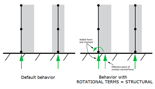 contact force without applying a nodal contact moment, as shown on the left side of Figure 4. However, with structural rotation terms accounted for in