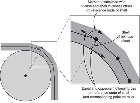 opposes the contact force acting on the roller, as desired. Such contact nodal moments are