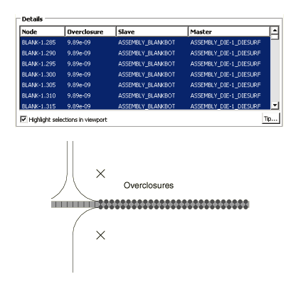 regions that are contacting in a converged state. The reported overclosure