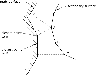 The secondary nodes are constrained not to penetrate into the main surface; however, the nodes