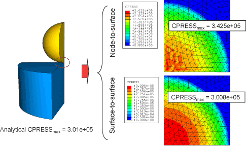Figure 3. Comparison of contact pressure accuracy for node-to-surface and