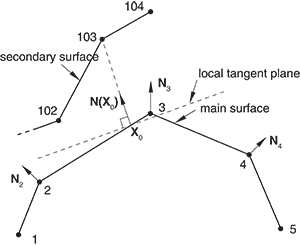 with the main surface for the small-sliding, surface-to-surface formulation. These rotated