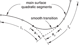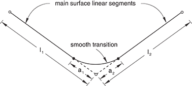 calculating surface tangents. For node-based secondary surfaces the tentative and directions are set at each node to coincide with the global