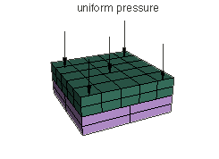 uniform pressure of 100 Pa on the bottom block across the entire contact