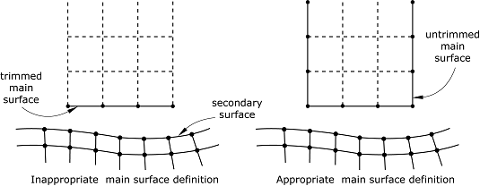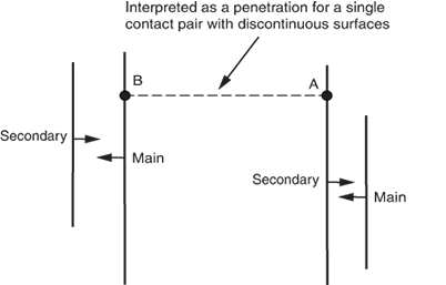 approximation of the main surface, as discussed in Contact Formulations in Abaqus/Standard. Abaqus/Standard can define these planes only when each secondary node can be projected onto the main