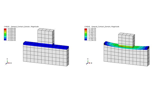 stress calculations and, thereby, influence underlying element stresses. Abaqus uses accumulated wear distances from the previous increment to modify