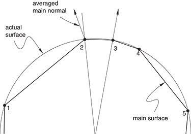 facets that are attached to the previously tracked main surface node. Abaqus/Explicit determines which adjacent facet is the nearest to the secondary node. It then