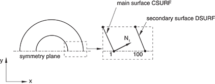 balanced main-secondary contact pairs, Abaqus/Explicit weights each set of corrections equally. In contrast, Abaqus/Standard uses a pure main-secondary contact algorithm; the secondary surface must always be