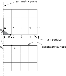 Figure 8. The main surface is not extended across the symmetry plane because the symmetry boundary
