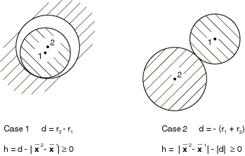 inside the larger, hollow sphere, and contact between two rigid spheres along