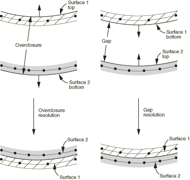 As discussed above in Default Contact Initialization Method, initial gaps and large initial overclosures between surfaces are not adjusted by the