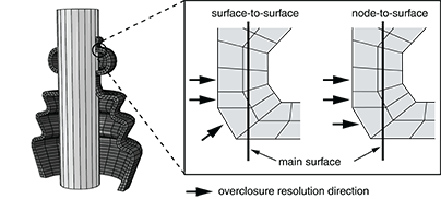contact pair algorithm, overclosures tend to be resolved along the main surface normal