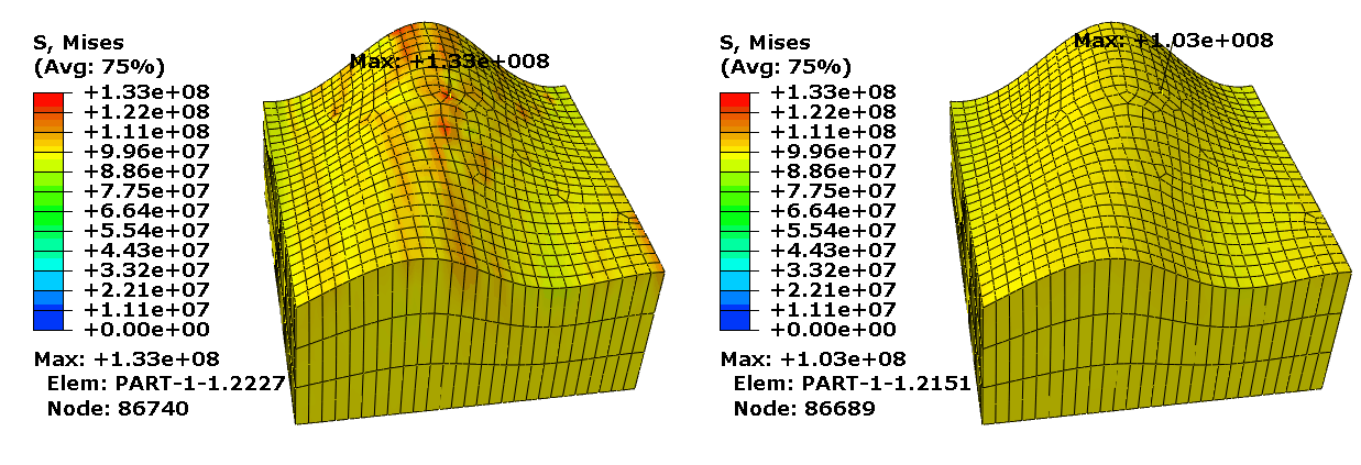 Abaqus/CAE can automatically identify any circumferential, spherical, or toroidal surfaces in a contact interaction that will benefit from contact smoothing and apply the necessary geometry correction methods.