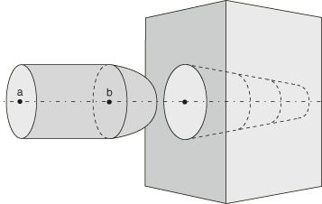 One method of surface smoothing applies to surface regions that are roughly axisymmetric, roughly spherical, or part of a toroidal surface. The smoothing method applies to general contact and surface-to-surface contact pairs. For example, the pin insertion model in Figure 1 could benefit from this smoothing: the body of the pin is cylindrical, the head of the pin is hemispherical, and the hole is conical. Surface-to-surface contact smoothing would also be effective if the surfaces were not perfectly axisymmetric, spherical, or toroidal; for example, if the pin body were slightly elliptical.